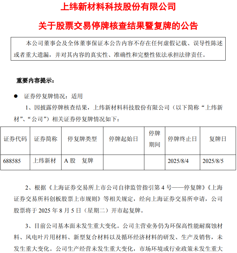 面对这场资本狂欢,监管层已拉响多重警报:上交所7月25日、8月1日两度公告对上纬新材股票进行重点监控。8月5日,多家机构紧急发布交易风险提示,明确表示将对异常交易行为“从严从重认定”,并警告投资者“切忌盲目跟风”。
