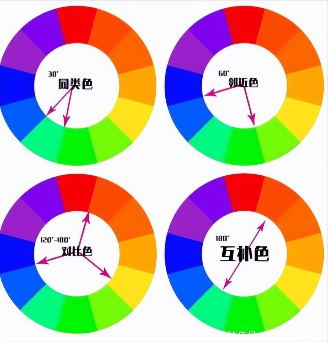 一、色彩搭配基础色彩搭配是一门非常深奥的学问,首先我们来大概了解一下色彩搭配的基础,在服装搭配中常用的一些色彩搭配有同类色、邻近色、对比色和互补色。