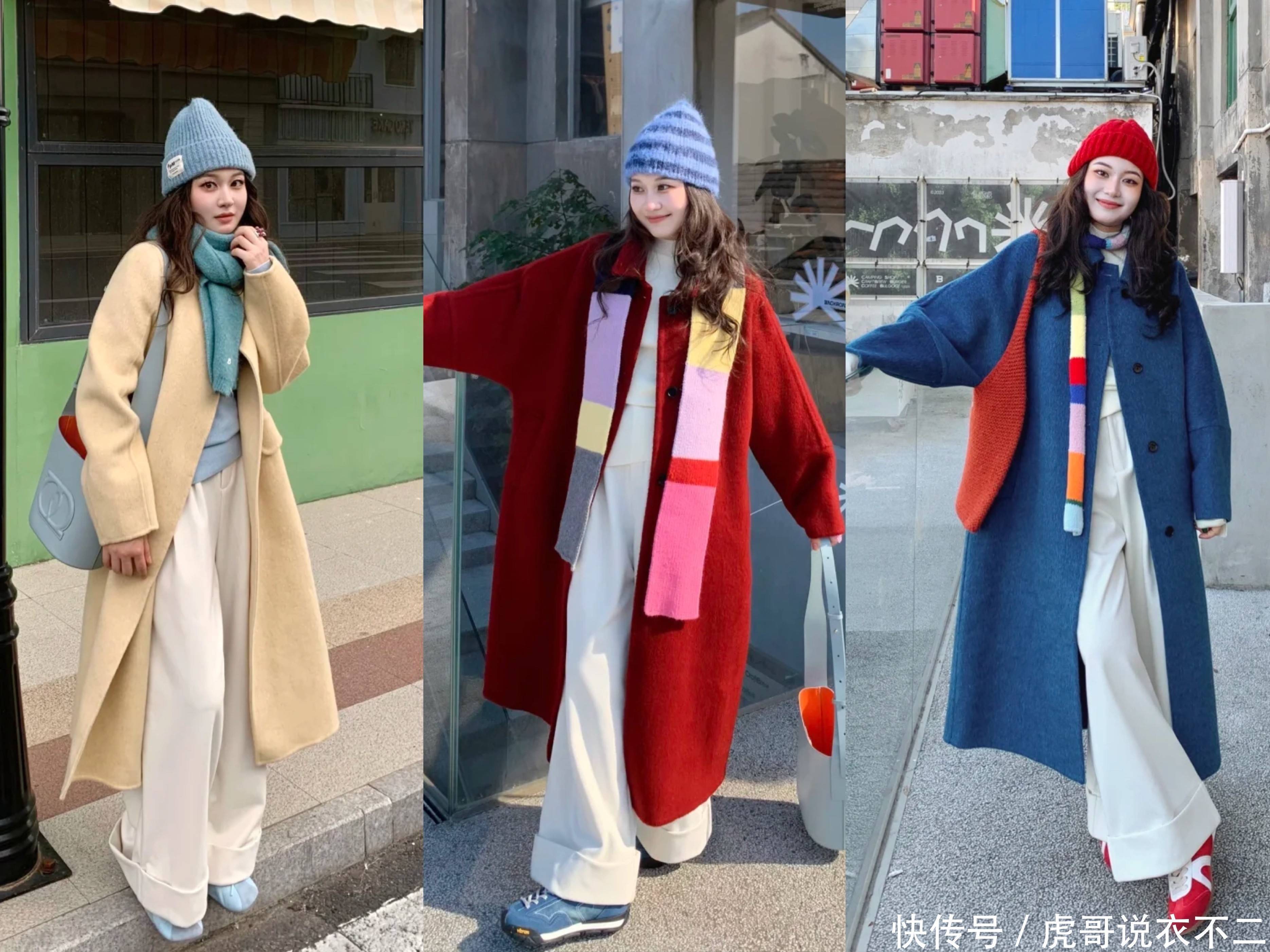四、彩色配饰点缀配饰的点缀在穿搭中非常重要,尤其是在冬季,可选择的配饰非常多,帽子、围巾、包包、甚至还有袜子。