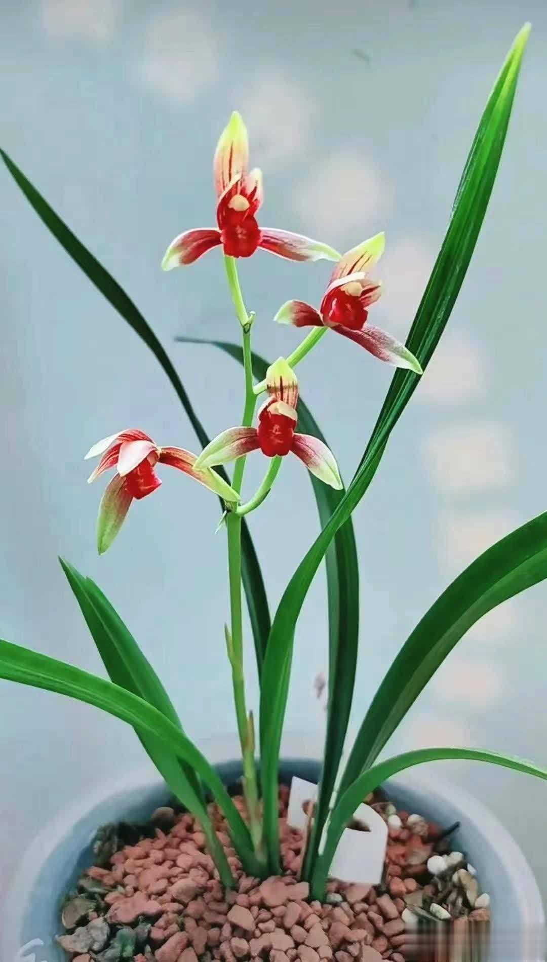 若你寻觅一款既能美化家居又能凸显品味的兰花,今日主角——“国魂”,不容错过。国魂兰的花苞色彩艳丽,红得似火,比鸡血的鲜红更甚。它是复色花代表,花瓣外围翠绿,红绿相间美不胜收,此花色在兰花中独一无二。搭配翠绿叶片,相得益彰,观赏价值极高。