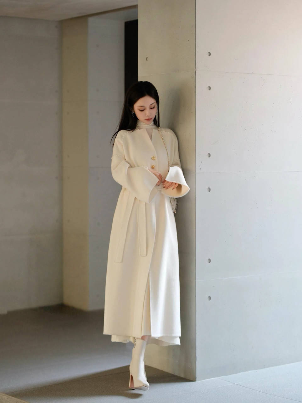 白色大衣虽以其包容性著称,不挑肤色与年龄,却唯独对身形有着细腻的讲究。